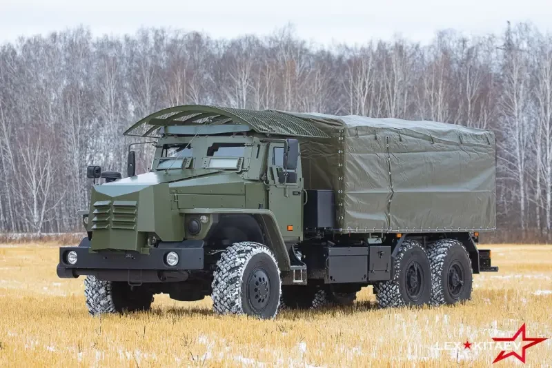 Не менее важным преимуществом бензовоза является тент, скрывающий цистерну от вражеских глаз и БПЛА. Из серийных машин это, похоже, первый бензовоз, мимикрирующий под менее жирную цель для дрона. Из примечательных особенностей изделия АТЗ-8-4320М можно усмотреть максимально смещённую к корме цистерну с топливом. Насосное оборудование теперь позади кабины. Такая компоновка призвана ещё больше удалить взрывоопасное топливо как от кабины с бойцами, так и горячего двигателя. Всё это повышает шансы экипажа вовремя покинуть воспламенившийся бензовоз. Отказались разработчики от противодроновых решёток на цистерне, заменив их на сплошные взводные экраны, расположенные с минимальным зазором. Есть надежда, что сама цистерна бронирована по минимальному уровню. Интересен стеллаж с 20-литровыми канистрами, размещённый сразу за кабиной. Доставка топлива на фронте не ограничивается только бензовозами – на переднюю линию подвозить бензин с соляркой могут даже на мотоциклах. И раздача канистр у бензовоза здесь как нельзя кстати.
