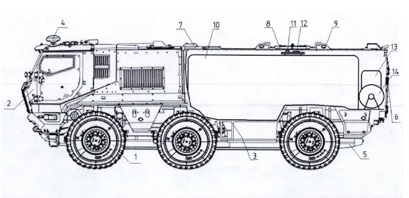 Вакантной остаётся ниша по-настоящему бронированного бензовоза. Именно он может работать не просто вблизи фронта, но и под обстрелом доставляя горючее – нередко это может быть решающим в ходе сражения. В металле пока такие идеи не реализованы, но имеются макеты и патенты. Например, у сотрудников Военной академии материально-технического обеспечения имени генерала армии А. В. Хрулёва есть целая серия интересных проектов, опубликованных Федеральной службой по интеллектуальной собственности. Один из них – автотопливозаправщик на базе броневика «Тайфун-К». Машина хорошо защищена от осколков и подрыва 6 кг тротила, а также от бронебойных пуль калибра 7,62-мм. Если в просторном десантном отделении разместить бак на несколько тысяч литров топлива, то получится неплохой доставщик солярки на переднюю линию фронта. Например, танкистам. Одного такого бронированного танкера точно хватит на заправку пары танков.
