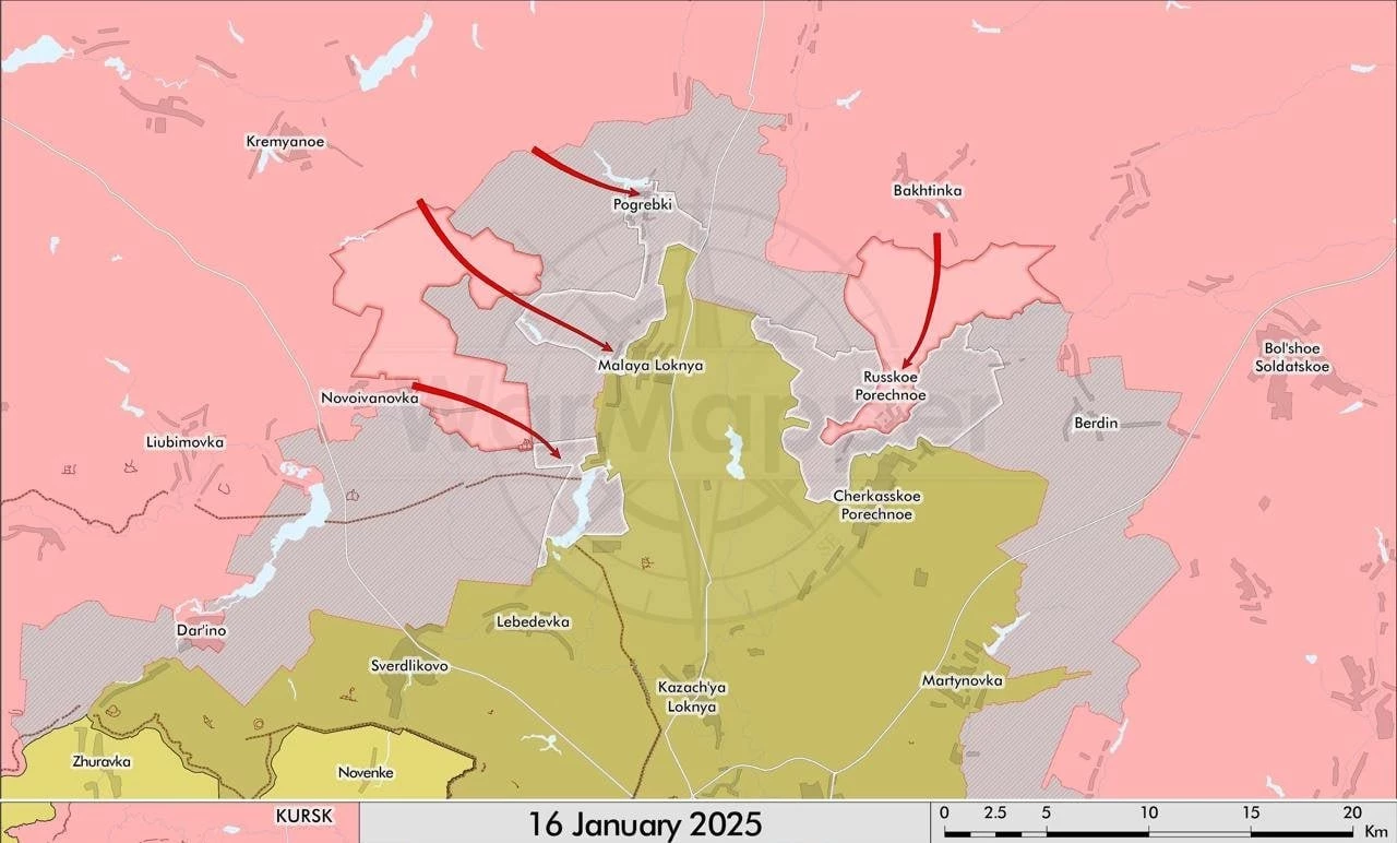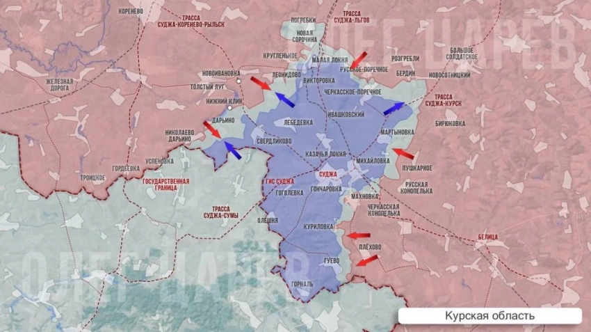 «Только в северной части бывшей зоны контроля ВСУ (Погребки / Малая Локня / Русское Поречное) российская армия начала давить с четырех сторон, активно поддавливая фланги. Украинский мини-наступ № 2, которого все ждали, пока так и не случился, поэтому российские войска, видимо, решили его не дожидаться и начали улучшать позиции сами», - отмечает канал.