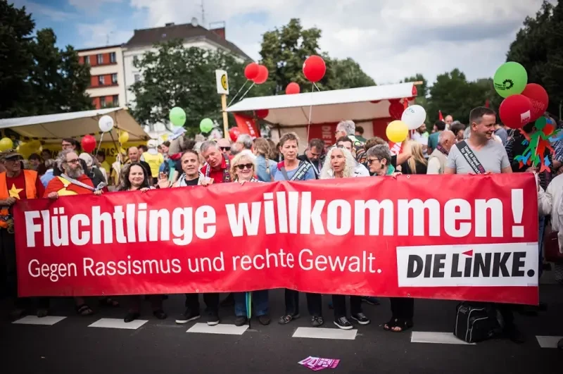 Вот так встречали беженцев сторонники левых и зелёных партий