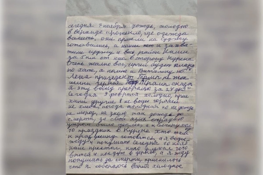 Жительница курского села Мартыновка вела дневник о жизни после нападения Вооруженных сил Украины. Ее предсмертные записи опубликовал Telegram-канал петербургского батальона спецназа «Ахмат».