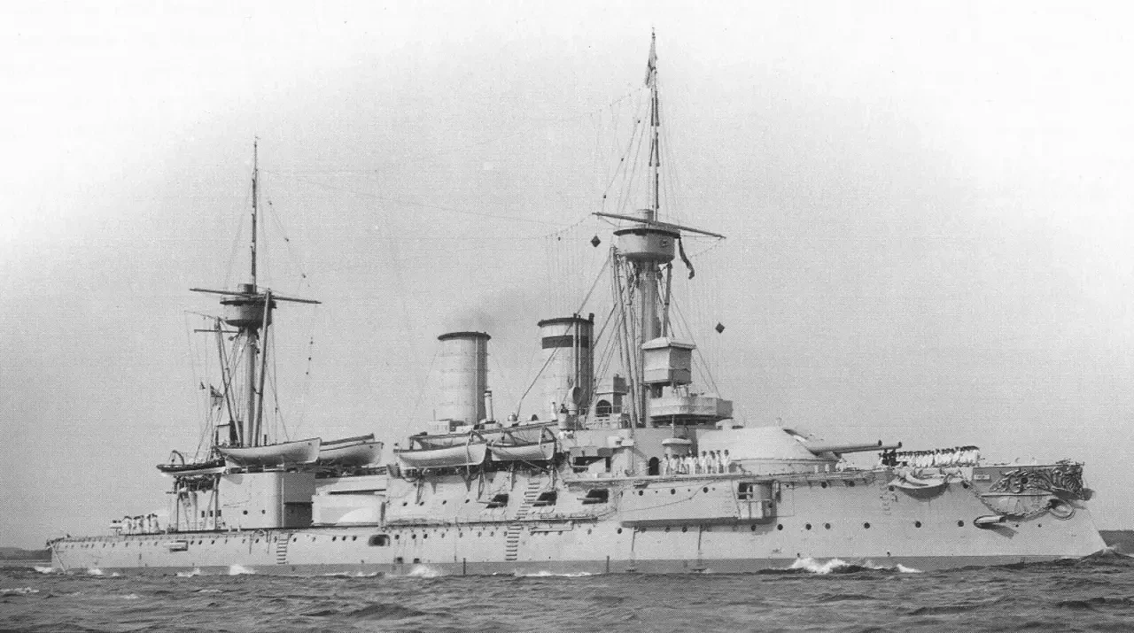 Командование кораблём принял капитан 2 ранга Иоаннис Дамианос 16 мая 1911 года, но в Спитхеде на корабле случился мятеж: греческие матросы не знали, что сыр с голубой плесенью — деликатес, а решили, что их просрочкой накормить хотят... В общем, командира сняли с должности, а назначили нового — капитана 2 ранга (я перевожу звание «кэптен» как капитан 2 ранга, хотя в американской системе военно-морских званий это скорее капитан 1 ранга) Павлоса Кунтуриотиса. С началом войны Кунтуриотис получил контр-адмирала и стал командующим BN, а его место на командирском мостике флагмана занял Софоклис Дусманис.