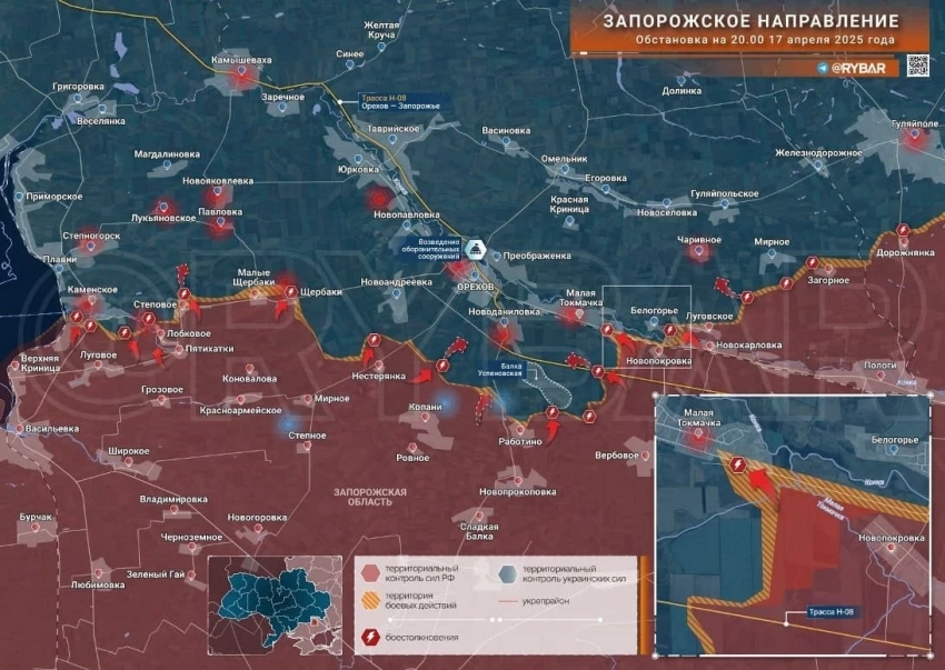 Новая карта боевых действий в зоне СВО на Украине на 18 апреля
