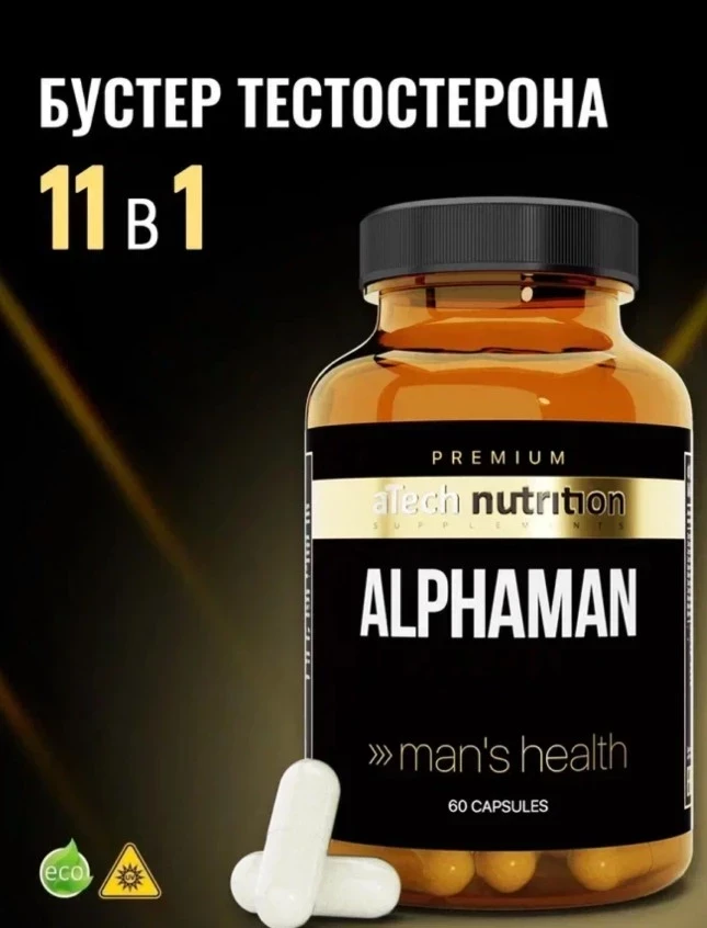 Комплекс ALPHAMAN aTech Nutrition Premium, для повышения тестостерона, БАД, 60 капсул
