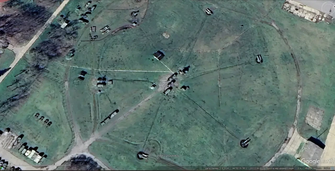 Спутниковый снимок Google earth: позиция югославского ЗРК С-125М на авиабазе Батайница