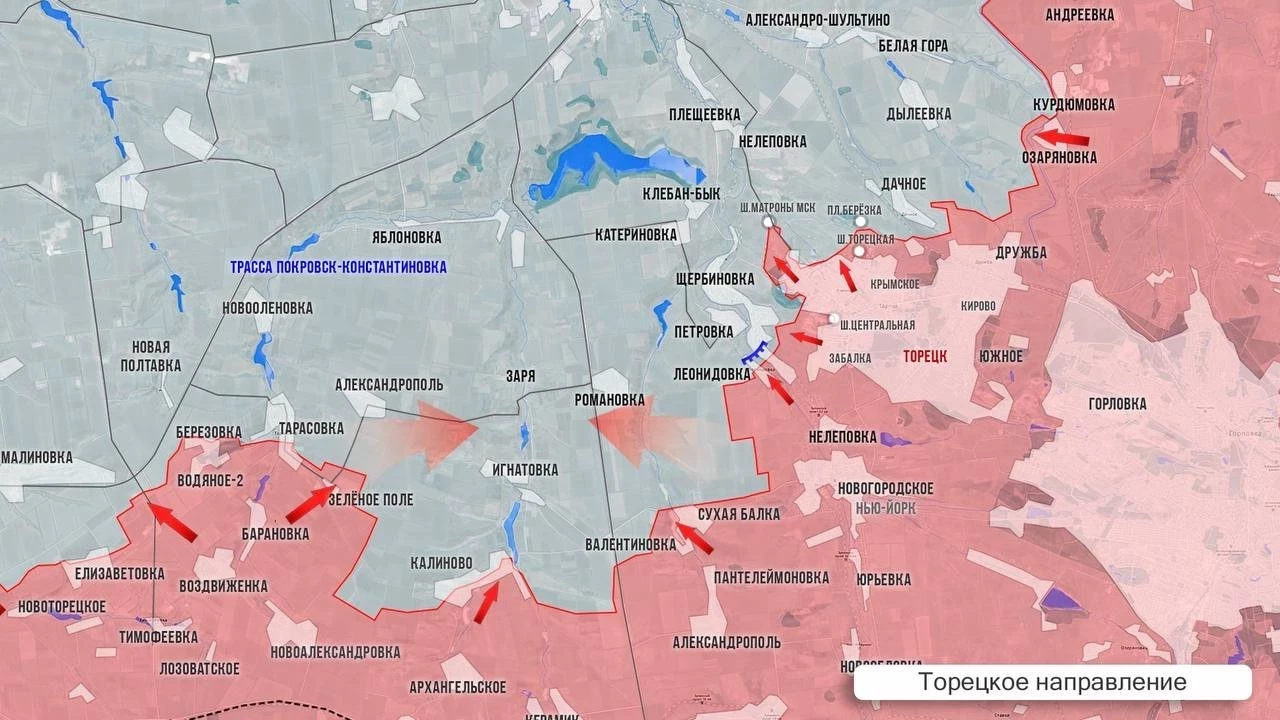На западном фланге Торецкого направления со стороны Тарасовки ВС РФ начинают продвижение в сторону Новой Полтавки. Туда же начинают движение от Водяного Второго и Берёзовки. Восточнее идёт сражение за Старую Николаевку и к северу от Сухой Балки. В Петровке и Щербиновке крайне ожесточённые бои после того, как ВС РФ зашли в посёлок с севера. Продолжаются боестолкновения в районе п. Дылеевка и северо-западнее Крымского в районе пионерлагеря «Берёзка».