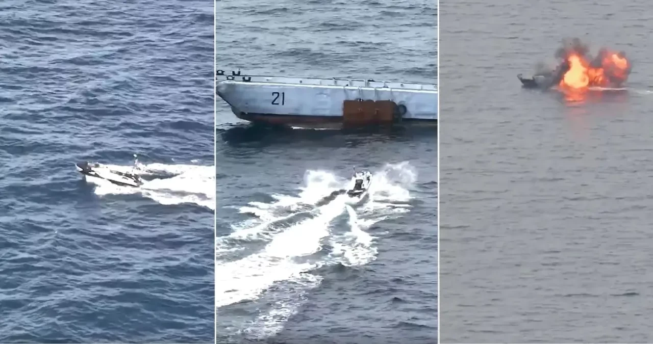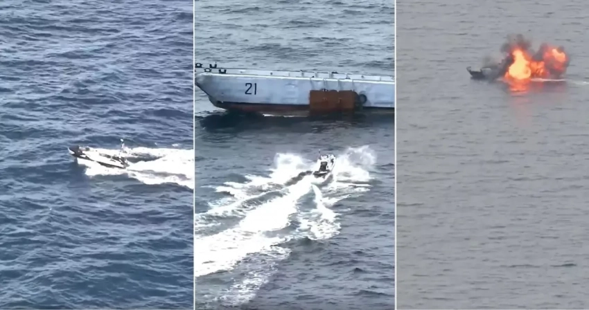 ВМС Франции в рамках развития морских автономных и роботизированных систем провели эксперимент: дистанционно управляемый гидроцикл с боезарядом был запущен в сторону списанного десантного катера типа CTM, что привело к подрыву судна. Соответствующие кадры показаны в сети.