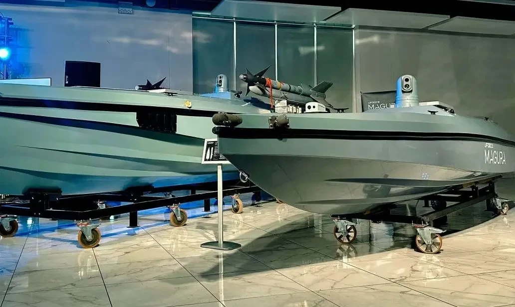В частности, Буданов* представил ударный безэкипажный катер Magura V5, мультифункциональную платформу Magura V6P и оснащенный американскими ракетами AIM-9 Sidewinder дрон Magura V7, как утверждается, способный сбивать даже самолеты. Кроме того, продемонстрирован БЭК Мagura V7 с пулеметом, предназначенный для огневой поддержки на воде. Длина V7 составляет около восьми метров, тогда как V5 — 5,5 метров. Кроме того, V7 отличается от предыдущей модели формой носовой части и отсутствием в ней ударно-взрывной составляющей.