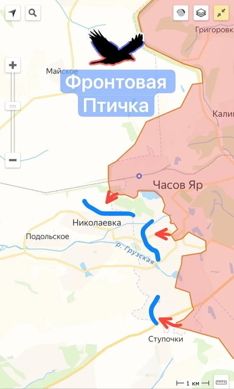 "В настоящий момент серьёзное продвижение наших бойцов фиксируется со стороны Часова Яра - непосредственно населенного пункта Ступочки, который, по факту, переходит в локацию Константиновки", - сообщил офицер в отставке.