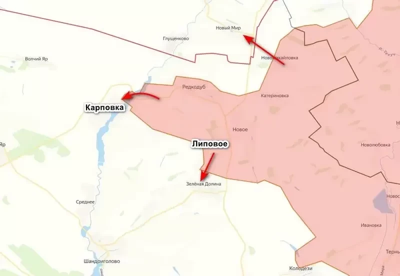 Штурмовые подразделения группировки войск «Запад» сумели войти и закрепиться в селе Карповка к западу от Редкодуба. Согласно данным на сегодняшний день, наши ведут бои за овладение данным населенным пунктом, тогда как противник предпринимает попытки выбить закрепившихся в селе российских штурмовиков. К самой Карповке подразделения ВС РФ вышли в воскресенье, сумев с ходу зацепиться за северные окраины, сообщает "Военное обозрение".