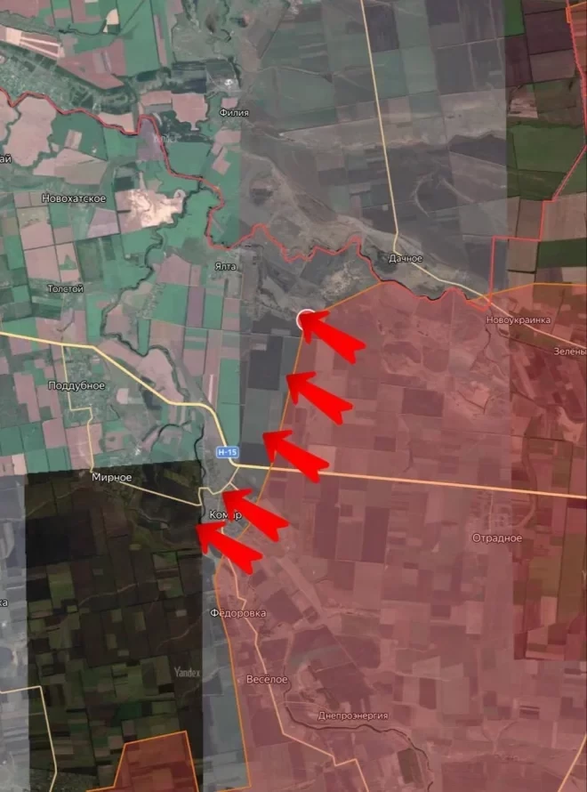 На Угледарском направлении инициатива остаётся за нашими, ВСУ не могут стабилизировать ситуацию. Армия России прорывается к границе с Днепропетровской обл на трёх участках: по рубежам Шевченко-Весёлое, Запорожье-Дачное, и в районе Комара, об освобождении которого объявило Минобороны. Сегодня наши бойцы взяли этот последний на направлении крупный узел обороны и логистики ВСУ. С момента освобождения Угледара армия России отодвинула линию фронта на глубину около 40 км.