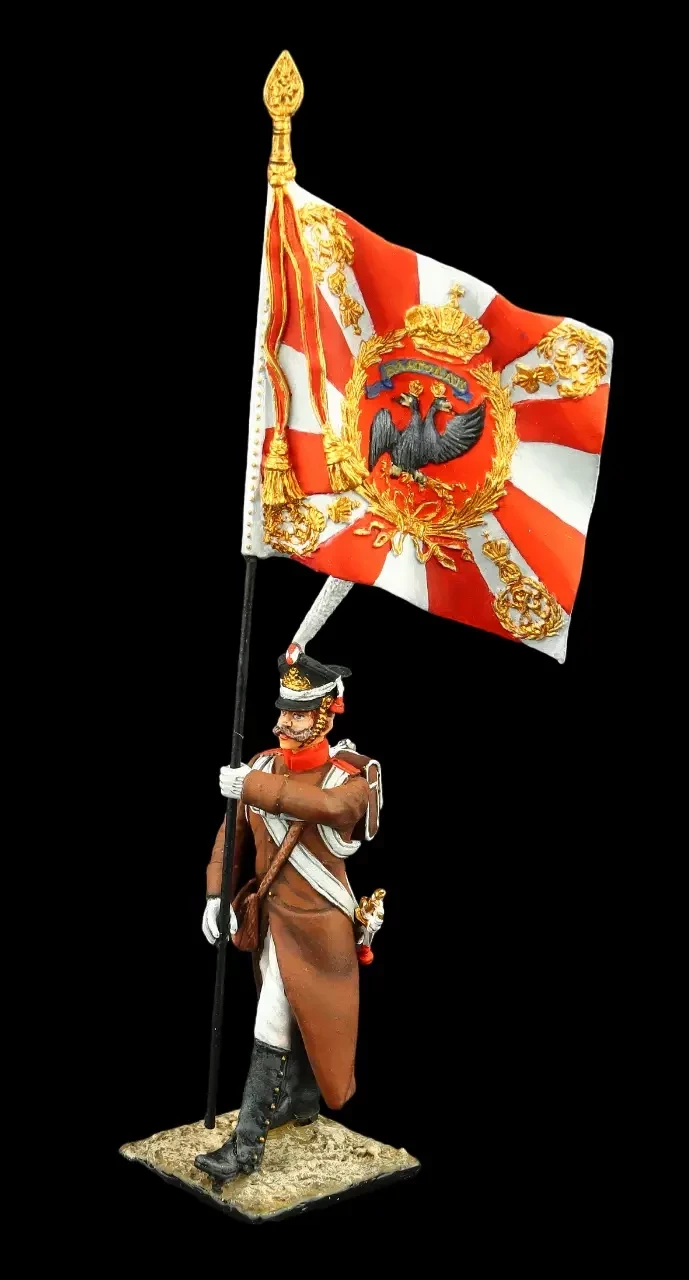 Подпрапорщик-знаменосец в атакующей шеренге. Регулярная пехота 1812-1814 гг. Производители: «Silver Dream Studio» и «Георгиевский крест»