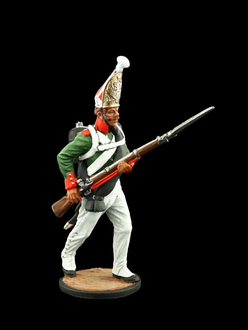 Регулярная пехота 1812-1814 гг. Рядовой в зимнем обмундировании в строю по команде «К ноге». Производители: «Silver Dream Studio» и «Георгиевский крест»