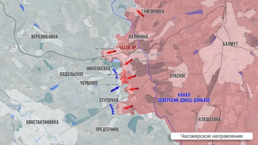 Из Часов Яра сообщают о продвижении наших войск пределах города. В районе Ступочек противник сопротивляется, копит пехоту в Предтечино, пытается подвозить боеприпасы. Наши работают по вражеской логистике.