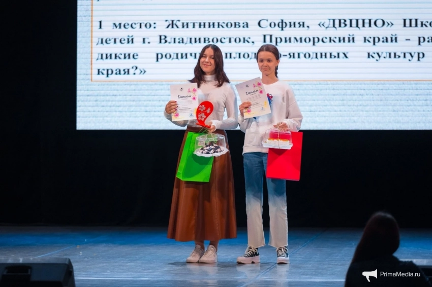 1 место: Житникова София “ДВЦНО” Школа одаренных детей г. Владивосток, Приморский край с работой “Кто вы, дикие родичи плодово-ягодных культур Приморского края?”;