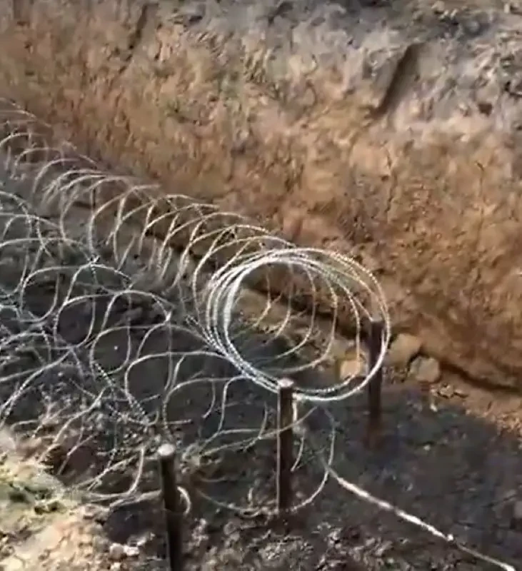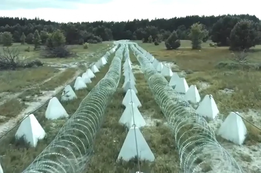 На кадрах рядом с укреплениями прогуливается девушка и комментирует увиденное. Она отмечает надежность линии обороны. Видно, что на большую длину прокопаны рвы, между которыми установлены в три ряда «зубы дракона». Глубина рва составляет около четырех метров, а по дну протянута колючая проволока.
