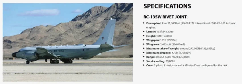 RC-135W Rivet Joint является одной из самых современных платформ для сбора разведывательной информации в мире.