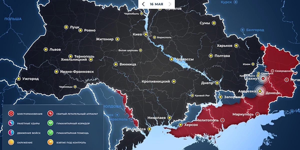 - Последняя обновленная карта военных действий на Украине сегодня, 16 мая 2023