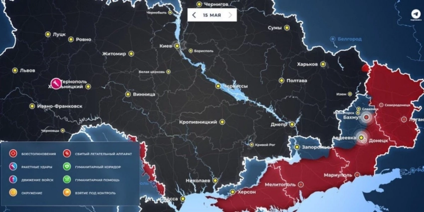 Карта боевых действий на Украине сегодня 16.05.2023 в реальном времени на сейчас