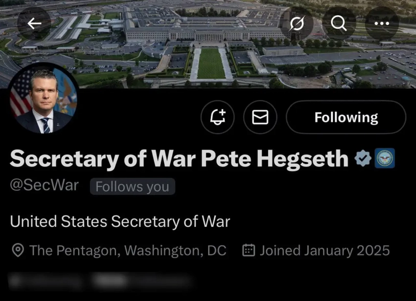 В связи с подписанием Трампом соответствующего указа Пит Хегсет стал менять наименование своей должности на страницах соцсетей, указывая, что с 5 сентября 2025 года он является министром войны США.