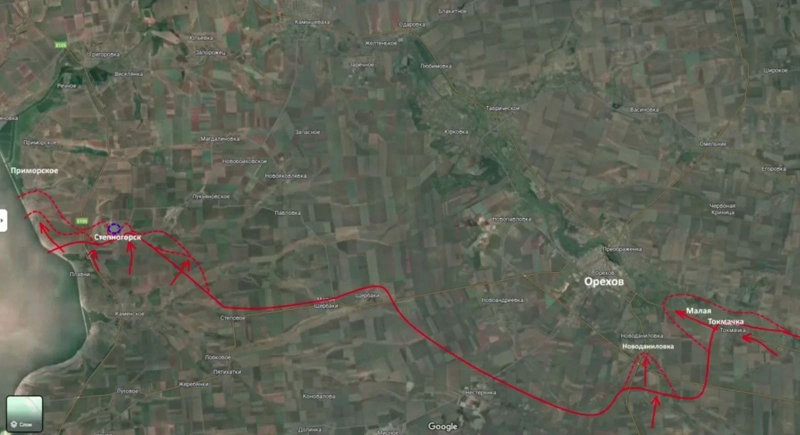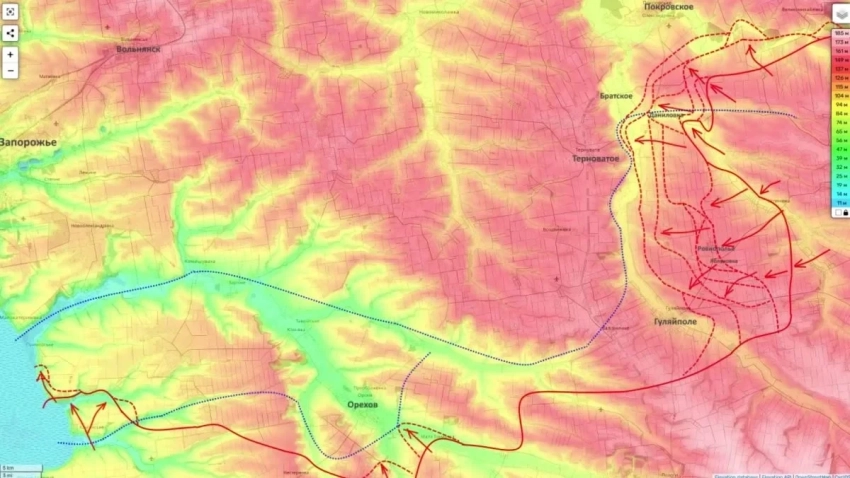 Не менее напряженная ситуация складывается на южном участке Запорожского фронта (линия Степногорск - Приморское - Орехов). Здесь российские войска применяют иную тактику, которую Юрий Подоляка охарактеризовал как «медленное и ползучее» наступление.