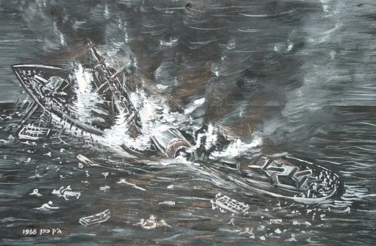 Поражённый «Эйлат» на картине неизвестного израильского художника