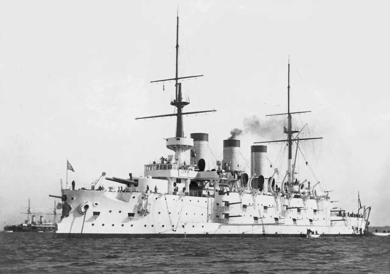 1. Водоизмещение броненосца было определено в 12 700 т.