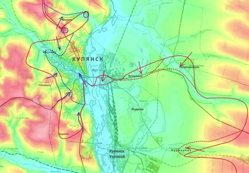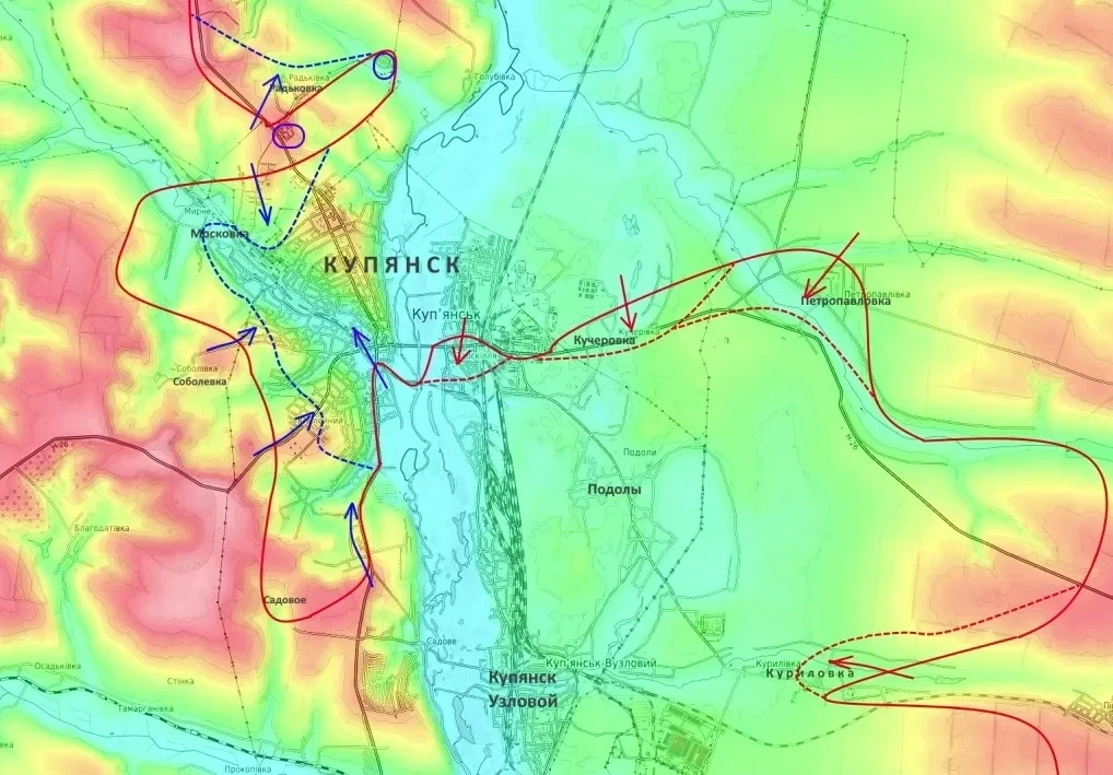 Вторая неделя здесь ознаменовалась тяжёлыми боями. Под давлением превосходящих сил противника российские войска были вынуждены оставить населенный пункт Московка. Зафиксированы вклинивания ВСУ на северо-западных и юго-западных окраинах Купянска. Враг пытается рассечь российскую группировку пополам через долину реки Оскол, уточняет Юрий Подоляка.