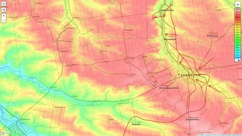 Военкоры буквально накануне проинформировали о начале городских боев за микрорайон Цветной в Гуляйполе. Российские бойцы вышли на улицу Поголовский шлях и ведут штурмовые действия внутри жилой застройки. Подоляка подтверждает, что восточная и северная части города уже контролируются ВС РФ, а сам город охватывается с флангов.