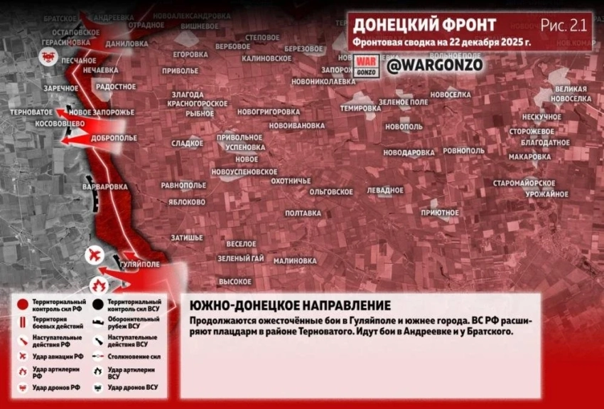 Карта боевых действий на Украине. Ситуация в зоне СВО на 22.12.2025