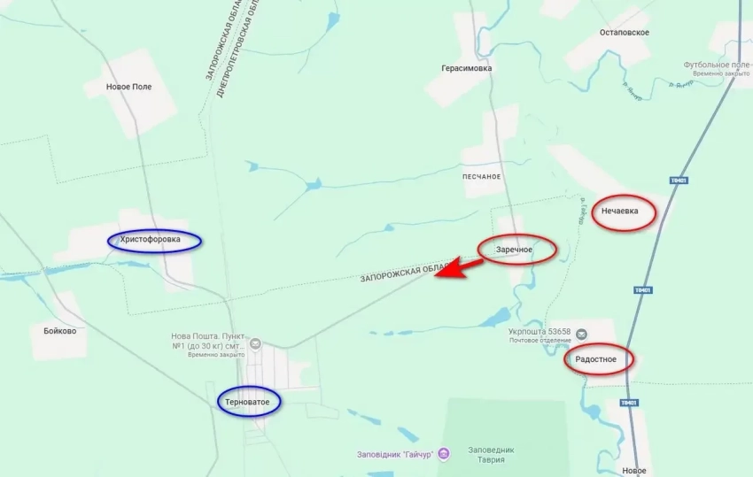 Войска группировки «Восток» продолжают свое движение в Запорожской и Днепропетровской областях, очередным освобожденным населённым пунктом стало небольшое село Заречное на стыке этих двух регионов. Переход данного населенного пункта под контроль ВС РФ позволяет расширить плацдарм на западном берегу реки Гайчур, а заодно взять под контроль участок дороги между Братским и Терноватым, сообщает "Военное обозрение".