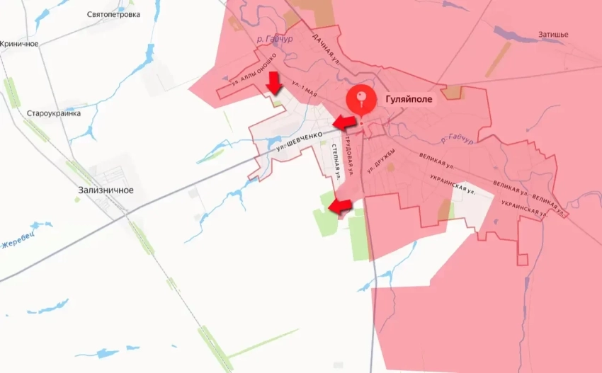 Развивая наступление, штурмовые группы ВС РФ при поддержке дроноводов, артиллерии и механизированных групп прорвались в западную часть Гуляйполя, выйдя за улицу Трудовая, отмечает "Военное обозрение".