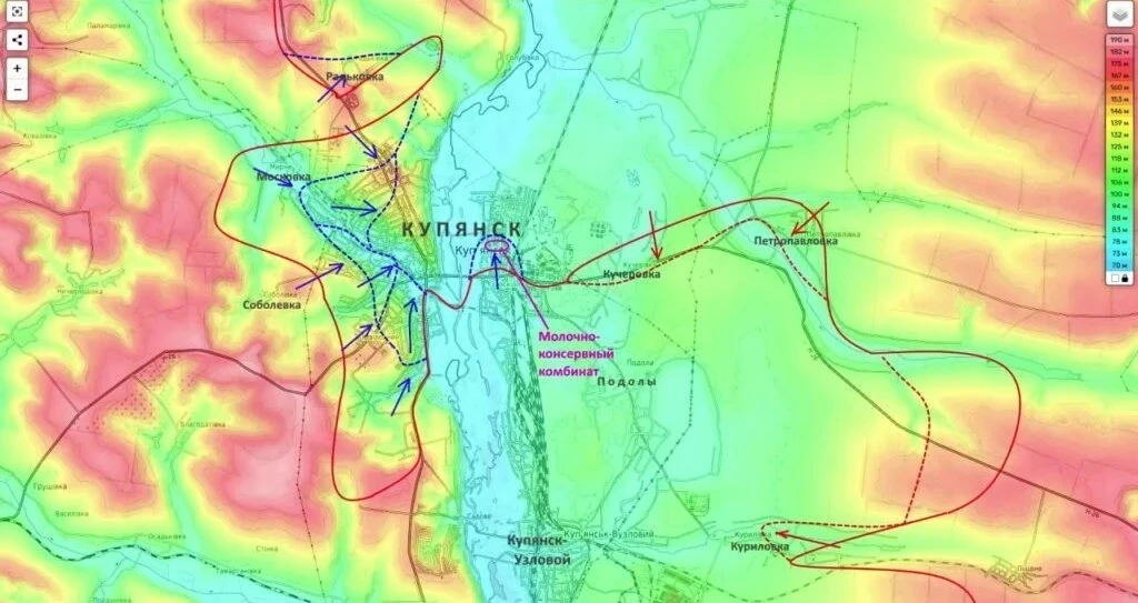 "Противник нанес нам удар в восточной части Купянска и сумел занять территорию молочно-консервного комбината. Что сразу же сделало обстановку для наших частей на правом берегу Оскола безнадежной. Это был последний район, через который можно было как-то осуществлять логистику, что сразу же вылилось в оставление нами значительной части правобережья", - заявил Подоляка.