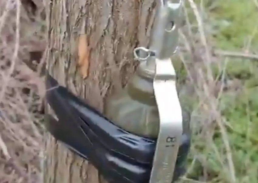 Первую из них он крепит на стволе дерева и обматывает УЗРГМ несколько раз леской. Далее леска тянется ко второму боеприпасу и тоже несколькими витками обхватывает его запал. Эта система действует на разрыв. Дальше леска тянется к третьей гранате и привязывается к ее кольцу.