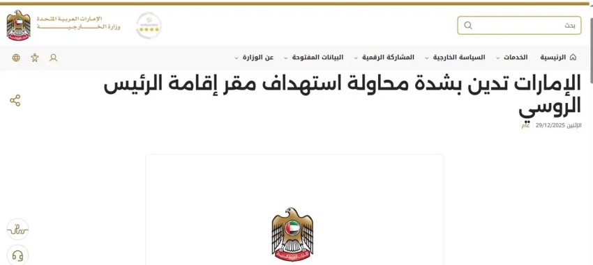 Объединенные Арабские Эмираты решительно осуждают попытку нападения на резиденцию Его Превосходительства Владимира Путина, Президента Российской Федерации. Это гнусное нападения, равно как и угроза, которую оно представляет для безопасности и стабильности.