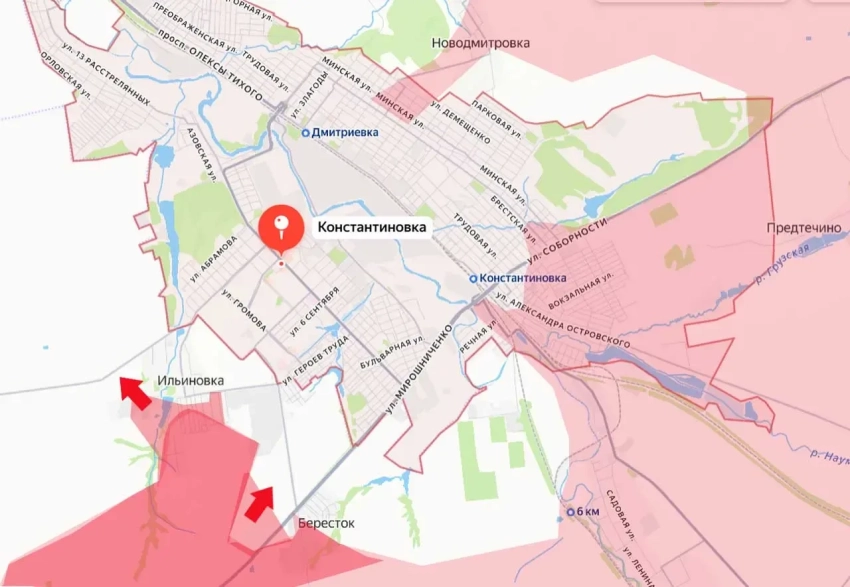 Под Константиновкой в результате успешных наступательных действий армия России заняла значительную часть села Ильиновка. На севере этот населённый пункт стыкуется с городом Константиновка, часть которого уже под контролем Вооружённых сил России.