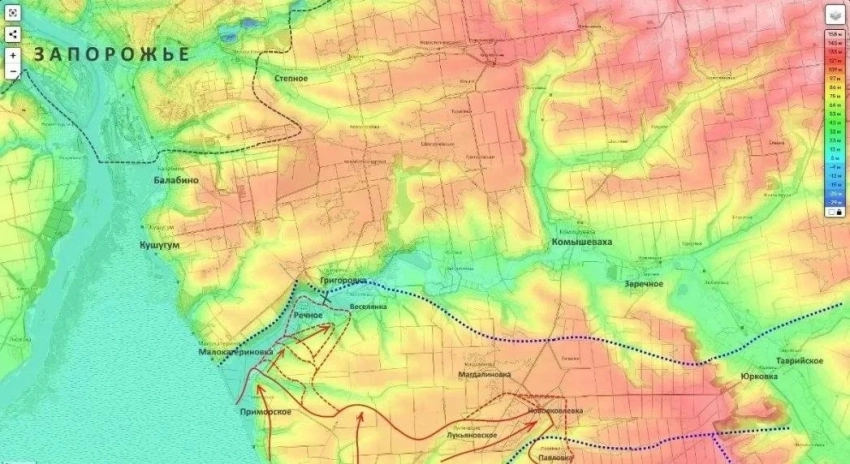 Между тем на фоне успешного наступления наших войск в Запорожской области противник спешно перебрасывает на этот участок фронта подкрепления. Учитывая специфику перебрасываемых в Запорожскую область украинских подразделений, противник явно планирует использовать их для диверсионных операций в нашем тылу. Помимо этого, вдоль рубежа Зализничное – Верхняя Терса – Терноватое ВСУ, судя по всему, готовятся к контратаке, надеясь выйти к реке Гайчур.