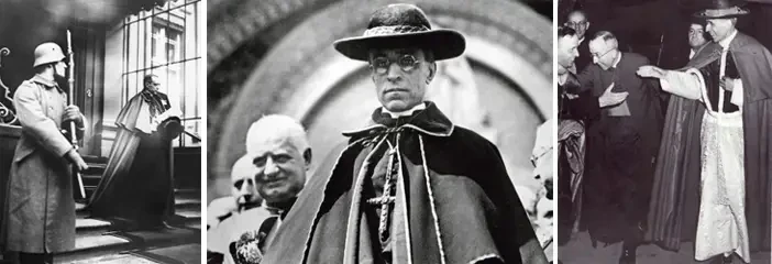Кардинал Эудженио Мария Джузеппе Джованни Пачелли(1876-1958) до своего избрания Папой он был выдающимся дипломатом, сыгравшим центральную роль в формировании международных отношений Ватикана в начале XX века. В 1936 году он стал первым Папой Римским, посетившим Соединенные Штаты (еще будучи кардиналом), много путешествовал и встречался с президентом Франклином Д. Рузвельтом. Источник: Bundesarchiv