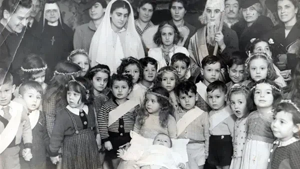 Евреи, которые когда-то бежали от преследований в Риме, нашли убежище в монастыре на периферии. «Родители младенца Иисуса прятались у нас» - Рождественская пьеса 1944 года с участием укрывшихся в монастыре евреев (дети, Мадонна, Святой Иосиф). Источник: Vatican News