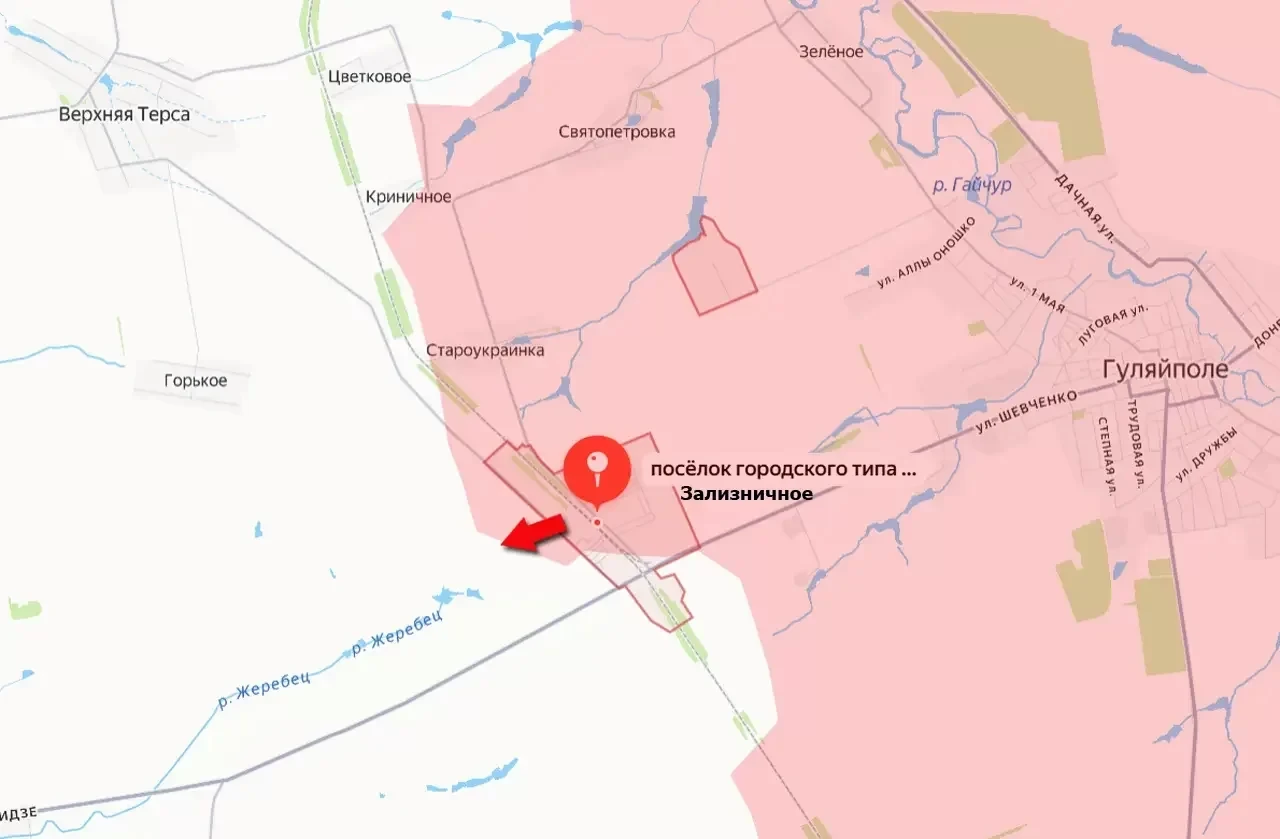 В результате наступательных действий и уничтожения противника на позициях российские подразделения вышли западнее железнодорожной ветки в Зализничном и взяли под контроль участок автомобильной дороги, ведущей в направлении села Верхняя Терса. В этом селе сходятся сразу несколько важных для восточной части Запорожской области автодорог, включая дорогу на Орехов, сообщает "Военное обозрение".
