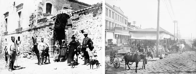 На фото слева: визит Муссолина в Сиракузы (Сицилия). На фото справа: Палермо, начало ХХ века