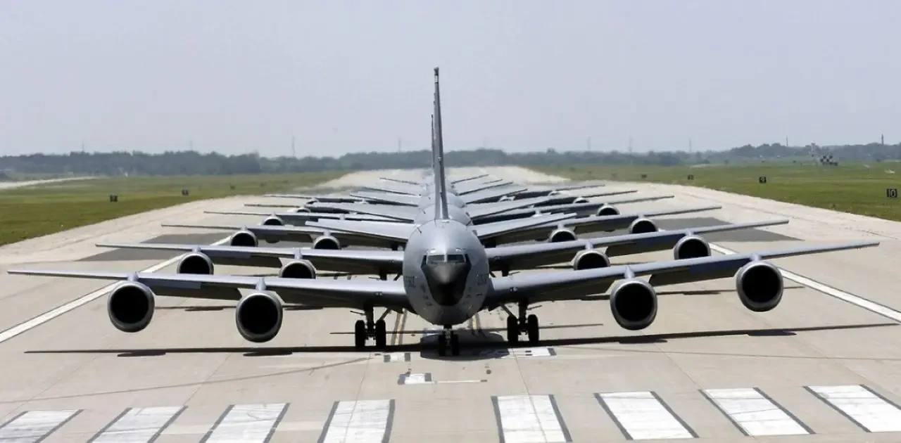 В сети опубликовано видео, на котором запечатлено значительное количество американских самолетов-заправщиков KC-135 Stratotanker, размещенных в израильском аэропорту Бен-Гурион под Тель-Авивом.