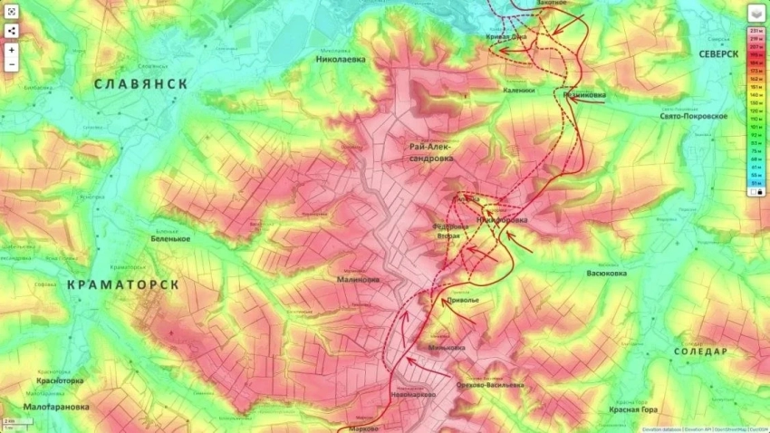 На фоне этой очередной откровенной зрады не обошлось и без привычного искажения фактов в свою пользу. Известный OSINT-ресурс Deep State (ГУР МО Украины) опубликовал карту, по которой кратчайшее расстояние от переднего края в районе Приволья до Краматорска не 15 километров, как сообщают наши военные, а чуть менее 20 км, пишет "Военное обозрение".