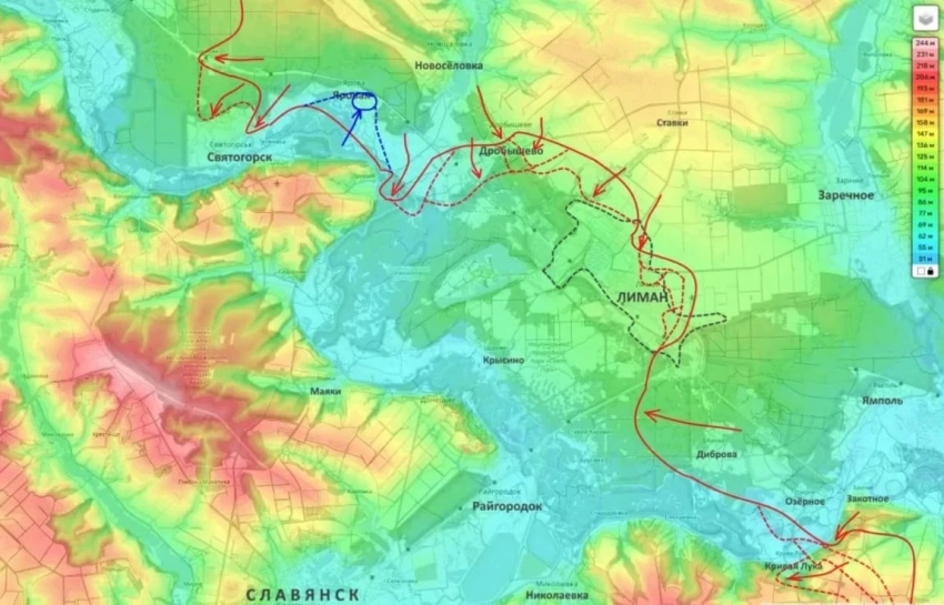 Из района Ставков российские бойцы вышли на северные окраины Лимана. По данным Подоляки, силы 25-й общевойсковой армии уже действуют в северной части города. Параллельно усиливается охват населённого пункта с флангов. Под полный контроль взят посёлок Дробышево, что позволяет планомерно сжимать полукольцо вокруг лиманской группировки ВСУ.