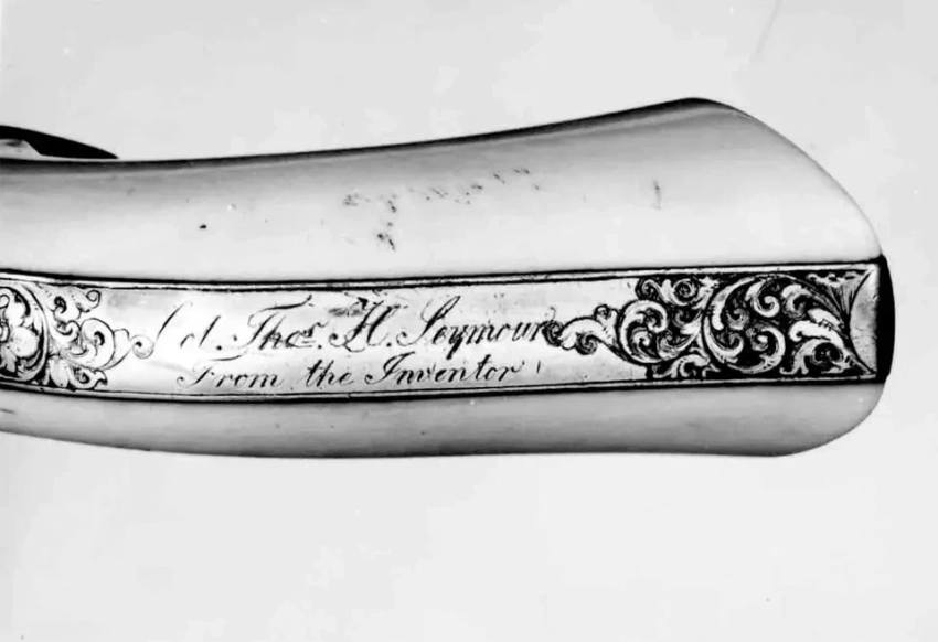 8. А это гравировка на его рукоятке с обкладками из слоновой кости…