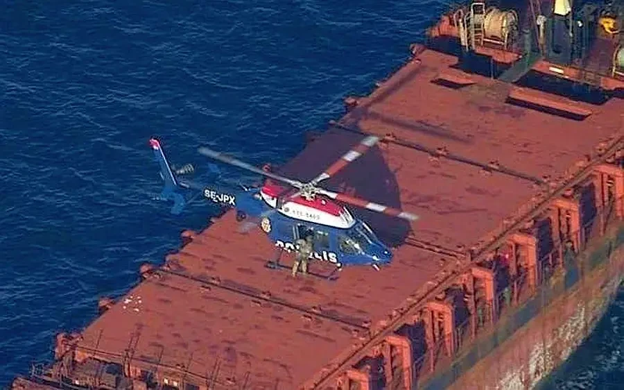 Для захвата балкера были задействованы не только скоростные катера, но и авиация. Сине-белый вертолет с надписью POLIS и бортовым номером SE-JPX завис непосредственно над палубой сухогруза. Далее на палубу с катера высадились люди в защитном снаряжении, в это время вертолет на небольшой высоте контролировал происходящее. Затем машина опустилась на палубу.