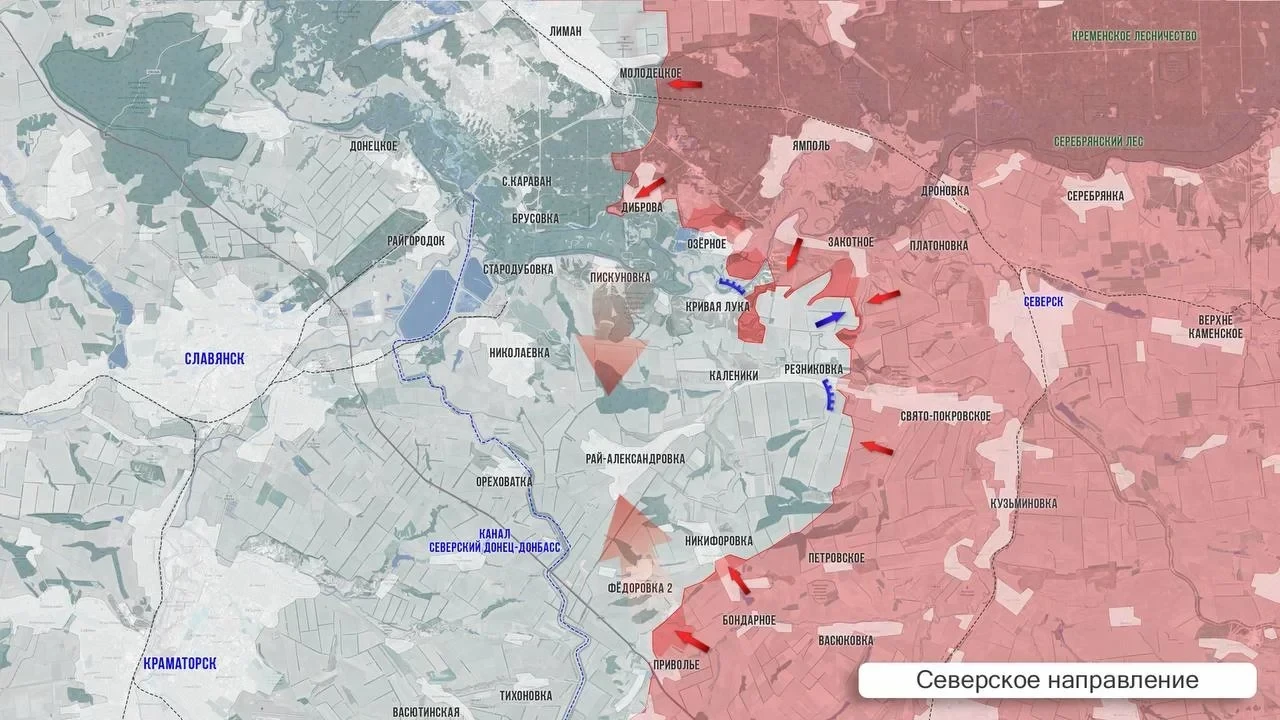 На Северском направлении продолжается выравнивание линии боевого соприкосновения. ВС РФ пробиваются к Рай-Александровке, продвигаясь южнее Резниковки, и уже завязали бои в лесном массиве Бабачий.