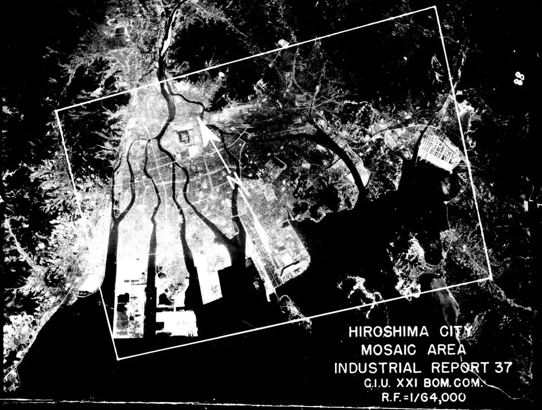 Американский аэрофотоснимок, показывающий, насколько обширной была промышленная зона в Хиросиме