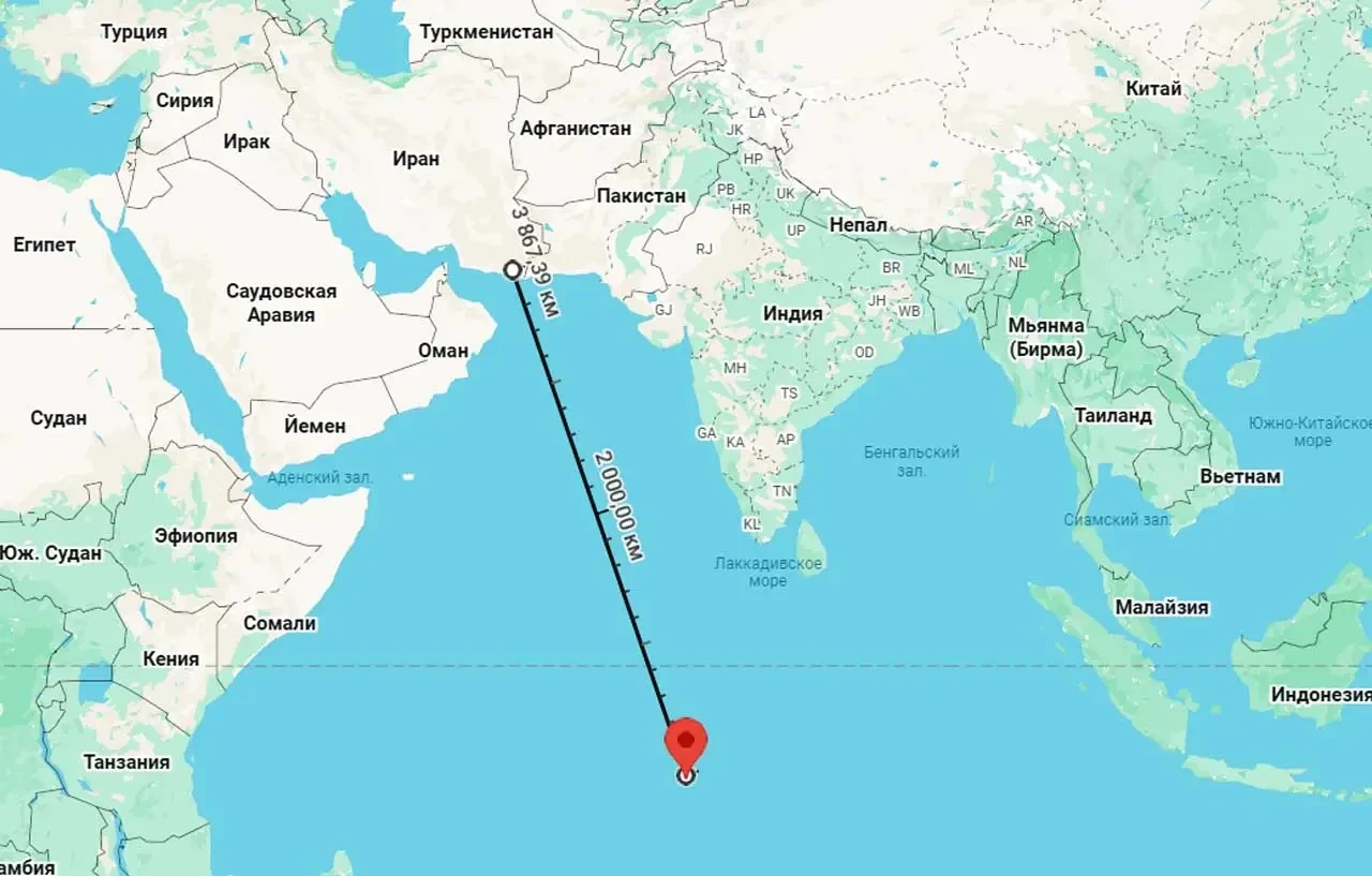 Две ракеты Ирана были направлены на базу Диего-Гарсия, до которой почти 4000 км