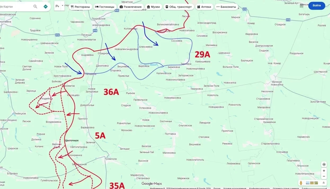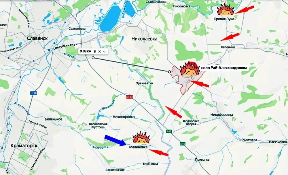 Целью такого продвижения блогер называет выход на линию Новониколаевка - Григоровка - Райское. В его интерпретации это должно стать частью более широкого замысла по глубокому охвату Константиновской группировки противника.